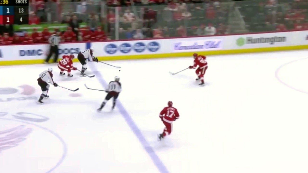 This is a pretty straight forward 3-on-3 rush but as we take a look at the attack and the way Bernier’s Red Wings defenders are set up for it, is there anything that stands out to you?
