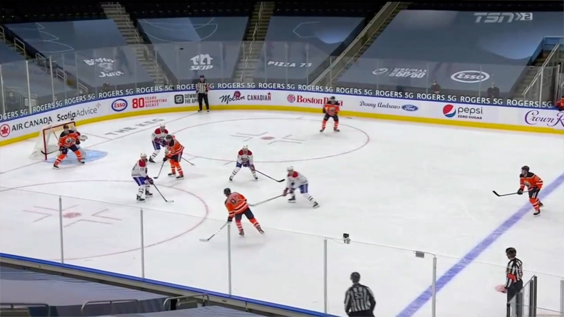 He explains how he breaks that down in his Pro Reads video below, but before we get to that let’s take a closer look at the specific scenario he ends up facing on this play as the puck gets moved down to Alex Chiasson in tight, with Draisaitl loading up in the bumper position.