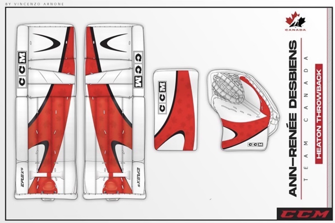 Ann-Renee Desbiens was set to debut a special set of new CCM All Out Custom EFlex 5 at the World Championships in Halifax before the tournament was postponed this week but now that they’ve leaked online we can share the special story behind her CCM Heaton tribute.