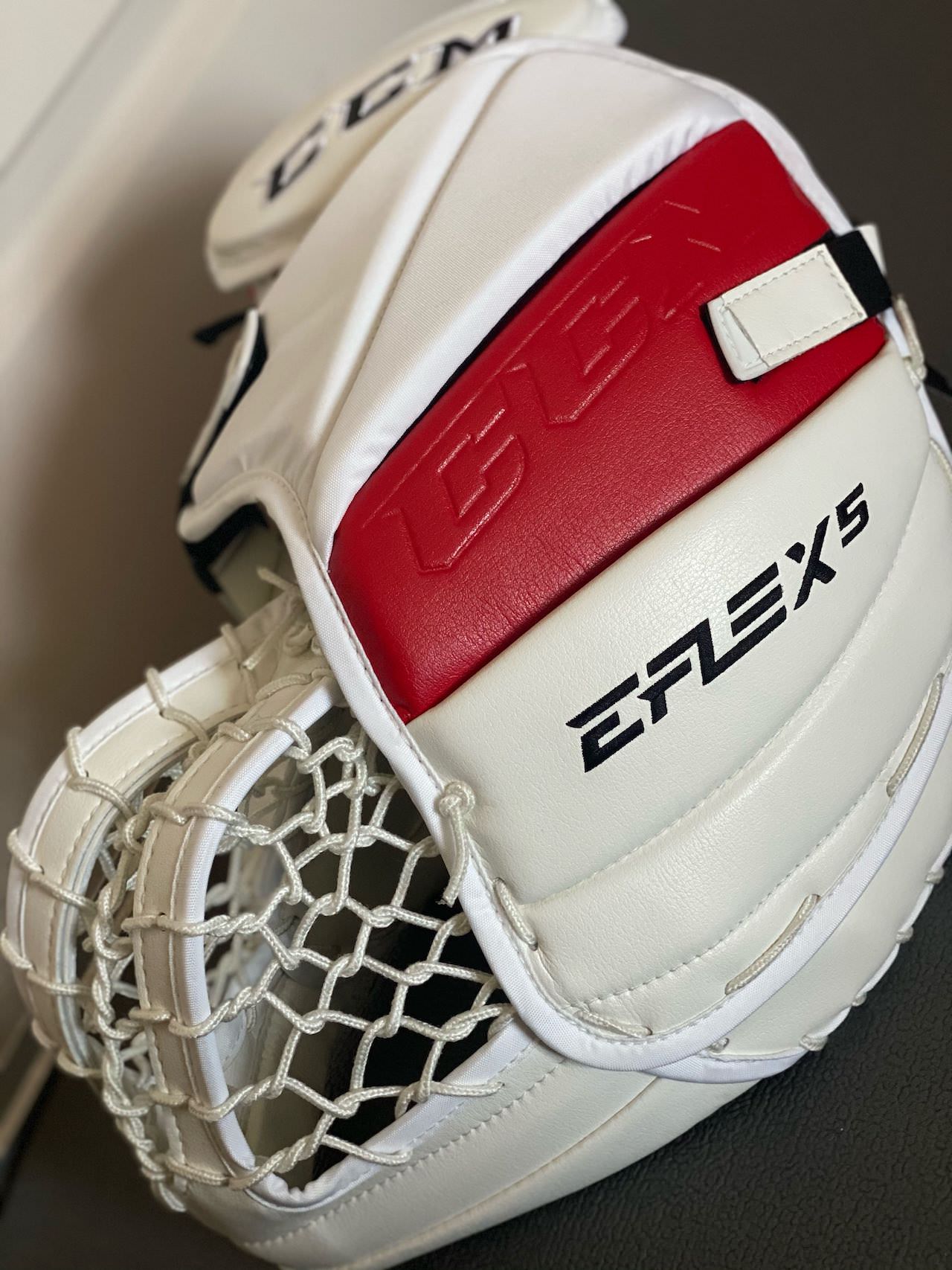 “Growing up, money was a little tight so I would just get whatever we could find at used stores and it was never matching,” Desbiens told InGoal Magazine. “I think I got my first matching set when I was probably 16 or 17, so pretty late. They were CCM too, they were the same colors, mainly black, red and white, so kind of the reverse of these and I debated putting the exact same gloves as what it used to have, but I was like ‘no, I like matching more nowadays.’”