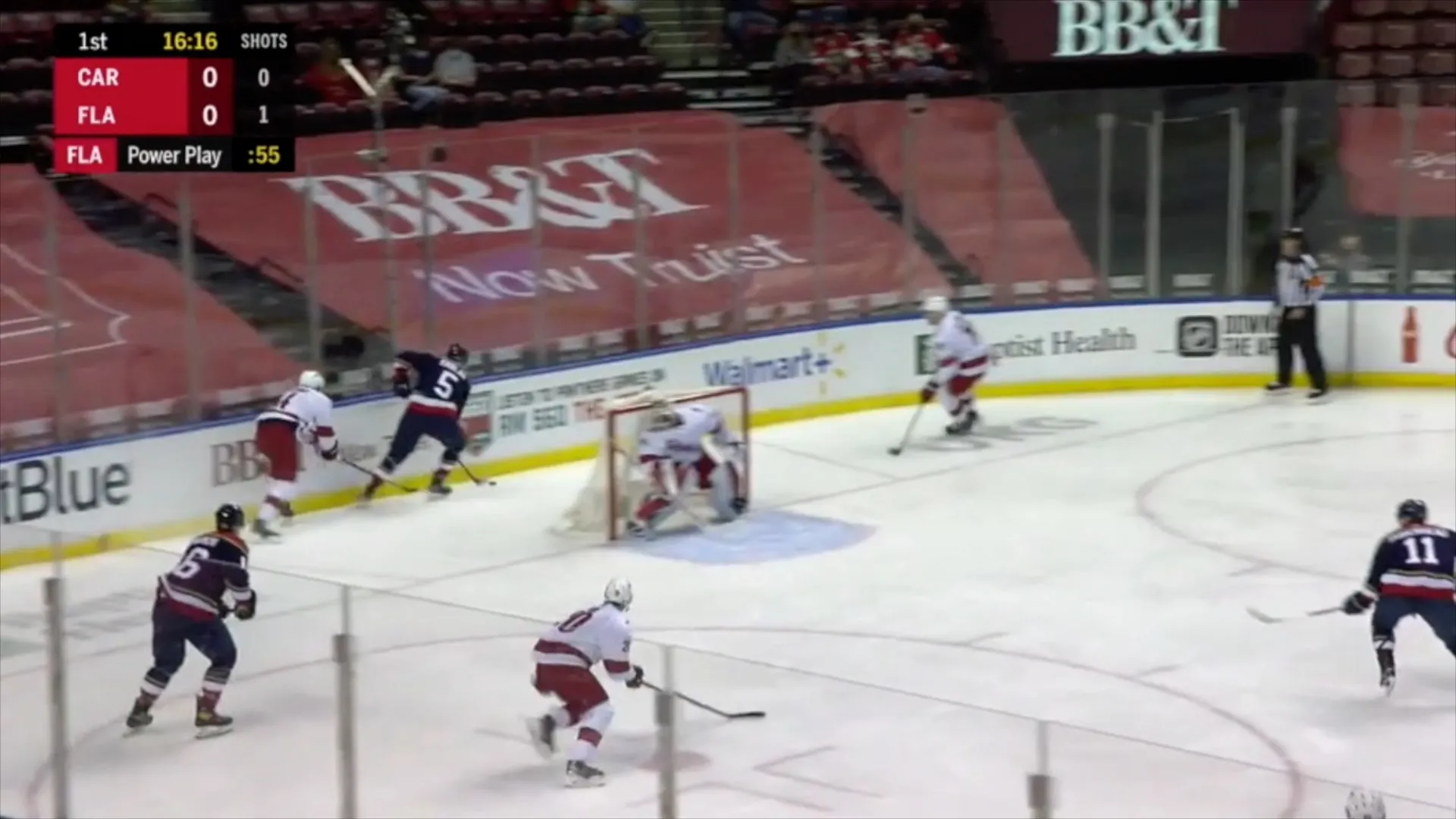This one actually features both of Reimer’s last teams, as he faces down a power play chance against the Panthers, and a screen from long-time goalie antagonist Patric Hornqvist that gives Reimer a chance to talk about the importance of establishing early positioning, but first a look at the early parts of the sequence with defenseman Aaron Ekblad behind the net: