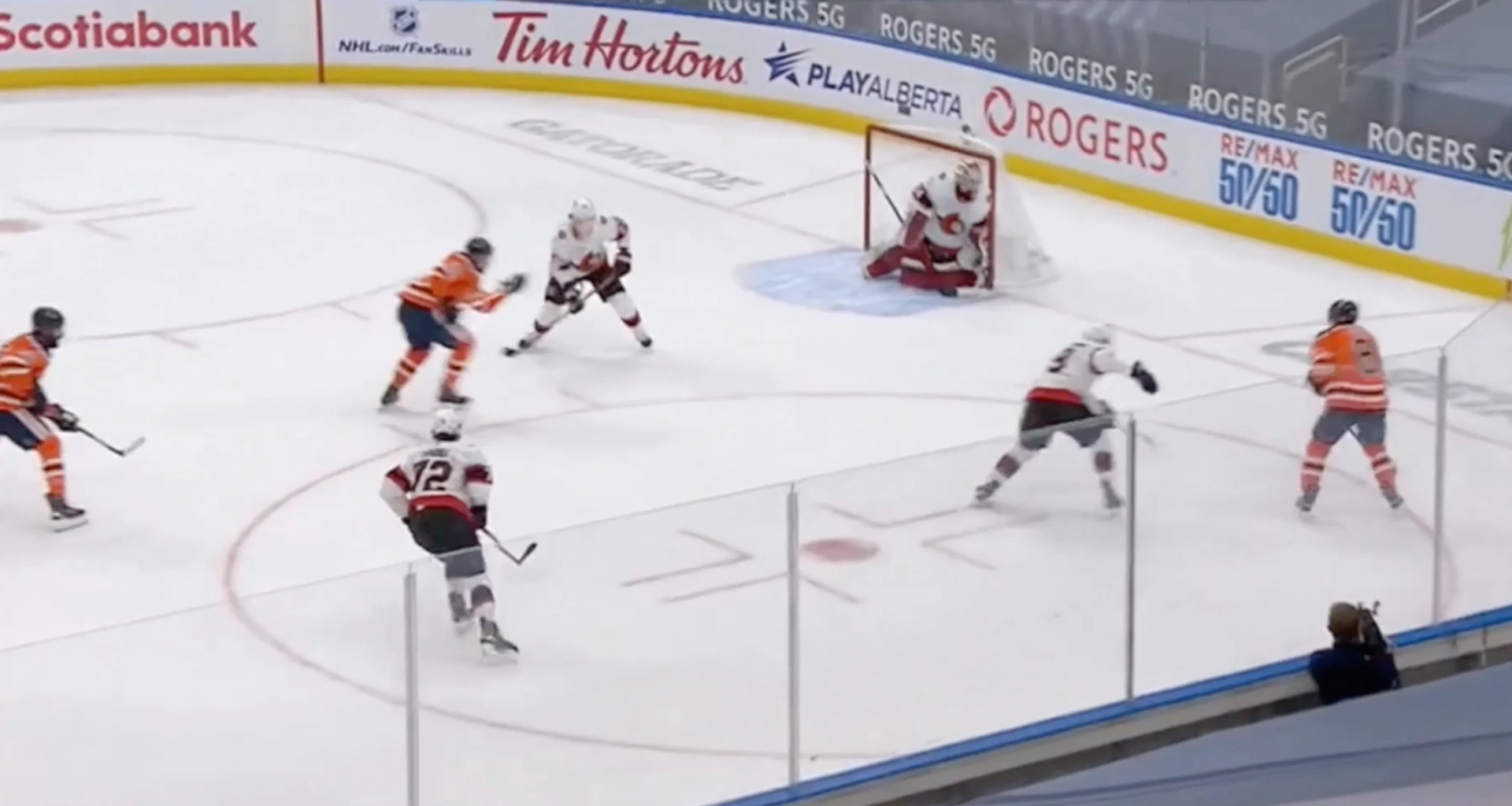 A few frames later, Turris is at the bottom of the faceoff circle and Daccord is in reverse-VH: