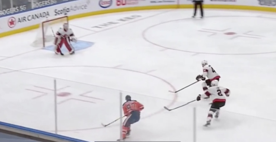 Watching everything in real time, do any of your answers change from above. Watch it again and see if you can spot anything about McDavid’s body position as he gets in tight, anything about the way he moved that hinted he was going to try to cut across the crease?