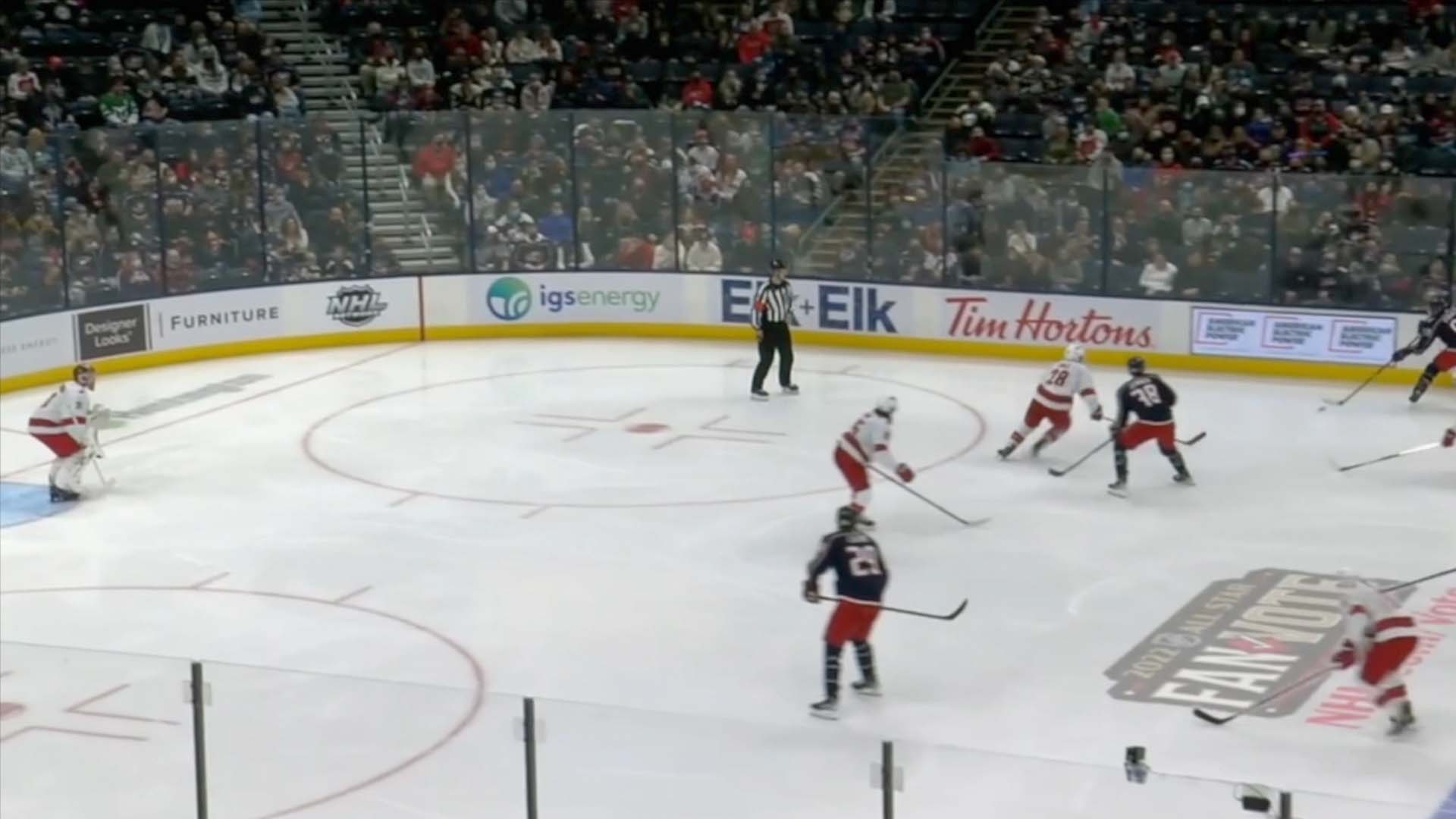 The first of another half-dozen breakdowns with Andersen features a 3-on-2 rush against the Columbus Blue Jackets. As they hit the blue line, what key factors can you identify already: