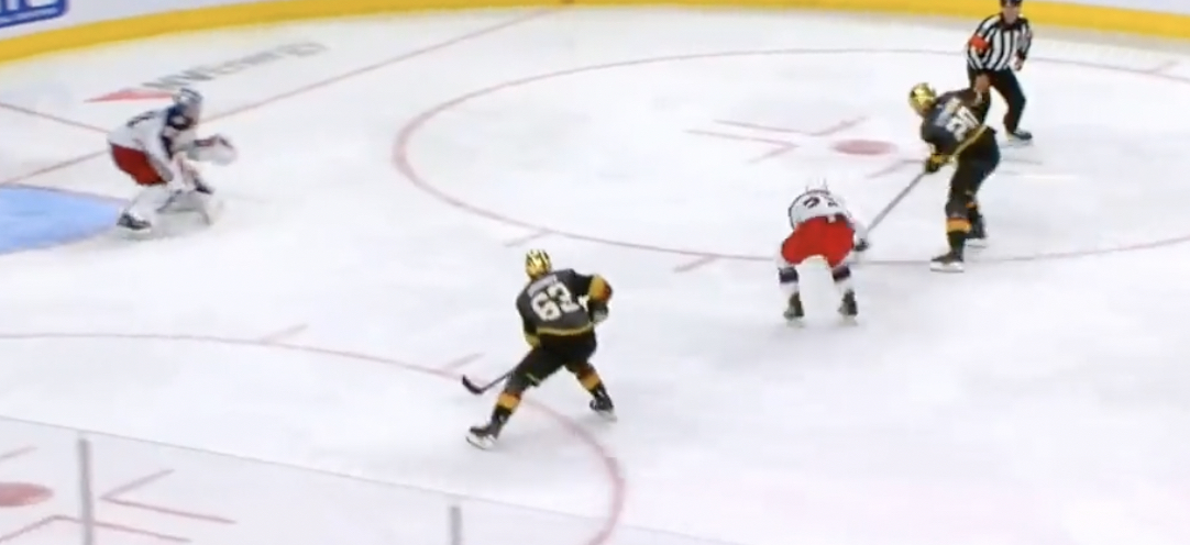 We can see Merzlikins has given up some of that ice as this play continues as he retreats to match the pace of the attack, but what’s the biggest thing that’s changed in the second freeze frame in terms of reading the most likely option for the puck carrier?