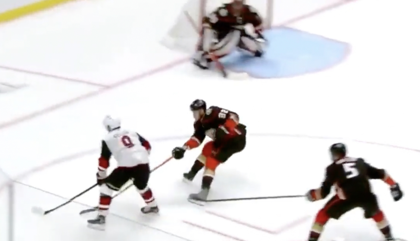 This is the fifth of those video reviews and this time Miller is facing a rush chance against skilled Arizona Coyotes forward Clayton Keller that becomes more of a sharp-angle chance.