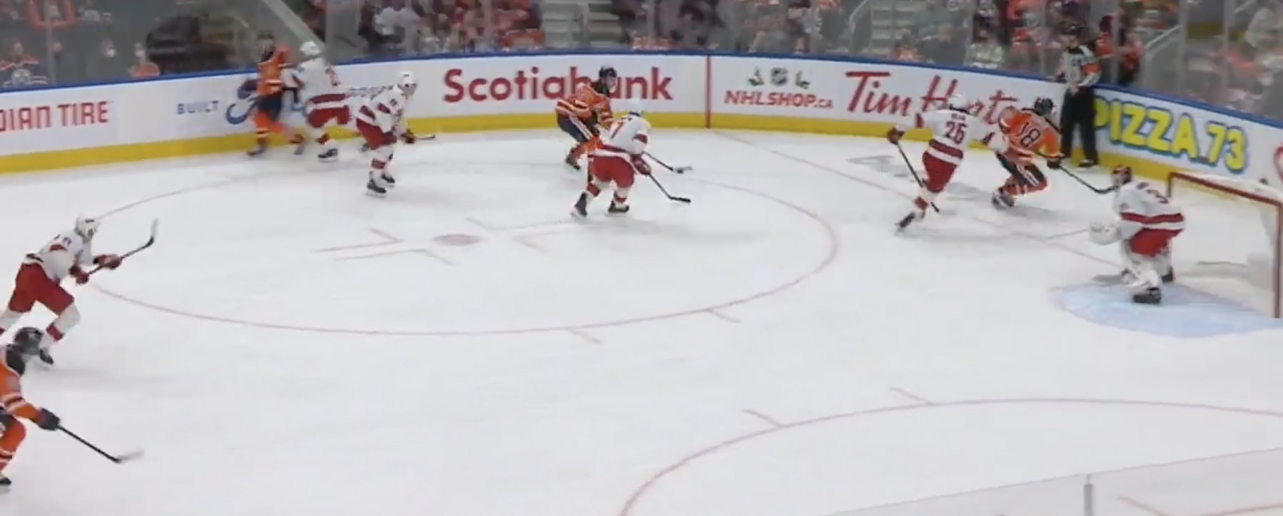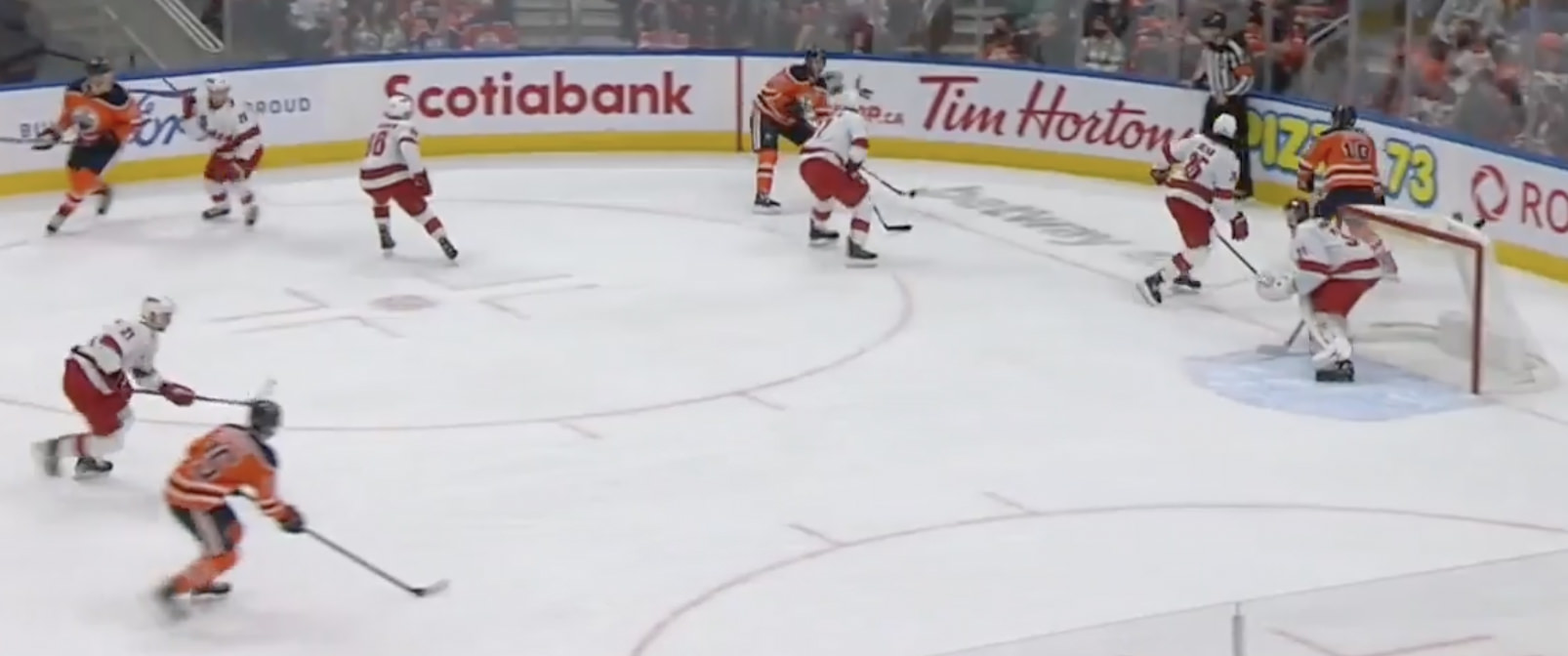 Because it’s McDavid skating onto a puck, speed matters, even on an in-zone chance like this one, so let’s look at the entire sequence in real time before we get to Andersen’s breakdown.