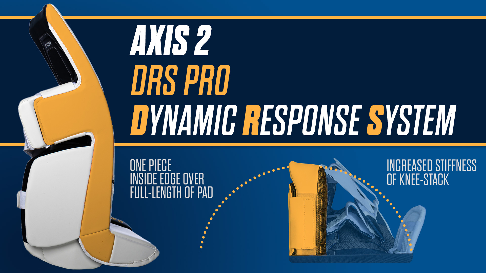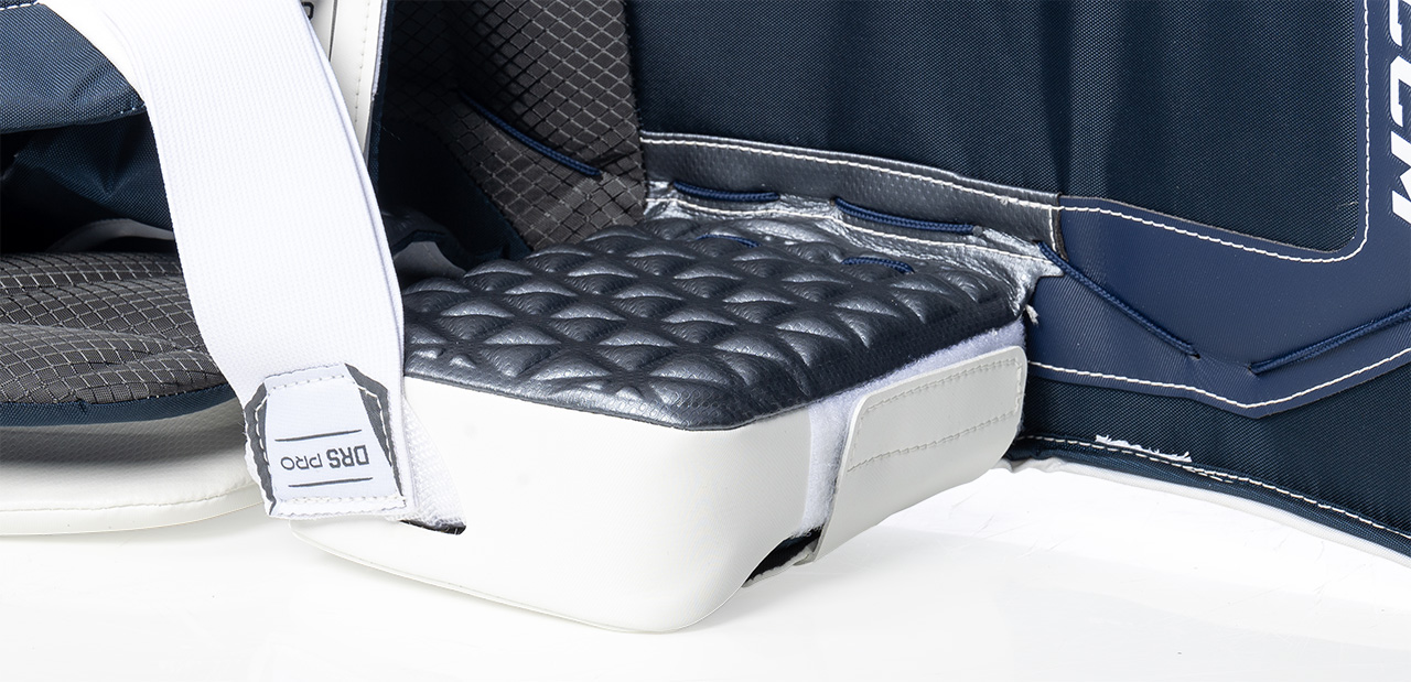 The new DRS Pro system solves that issue for CCM by fixing that knee stack firmly to the inside edge of the pad to help optimize that butterfly drop and get you to the ice faster.