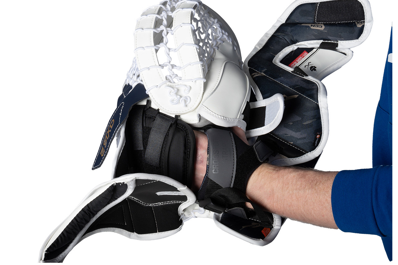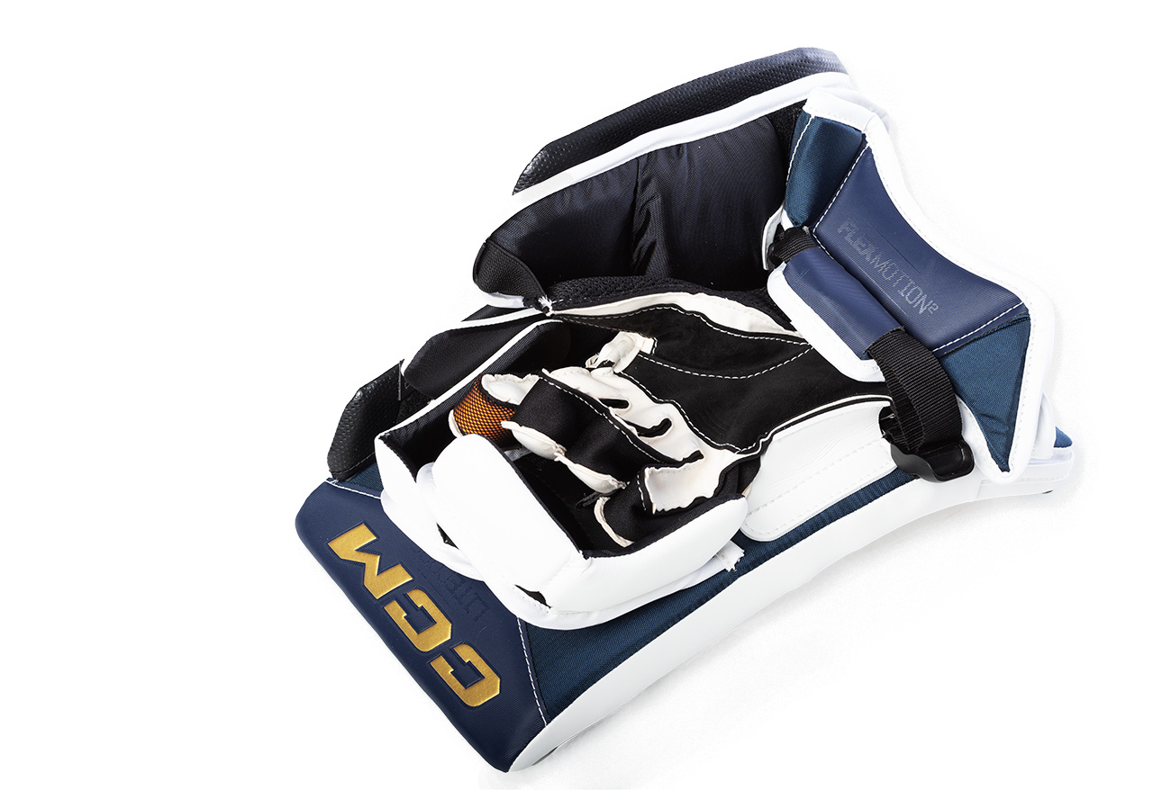 CCM completely re-engineered how the hand connects to the glove in two ways: a new Cross Form Strap system that anchors the back of the hand (while also freeing up wrist mobility even more) and an open, heat-moldable finger system with a three-point adjustable pad system over the back of the fingers to help secure and tighten your grip on that new closure.
