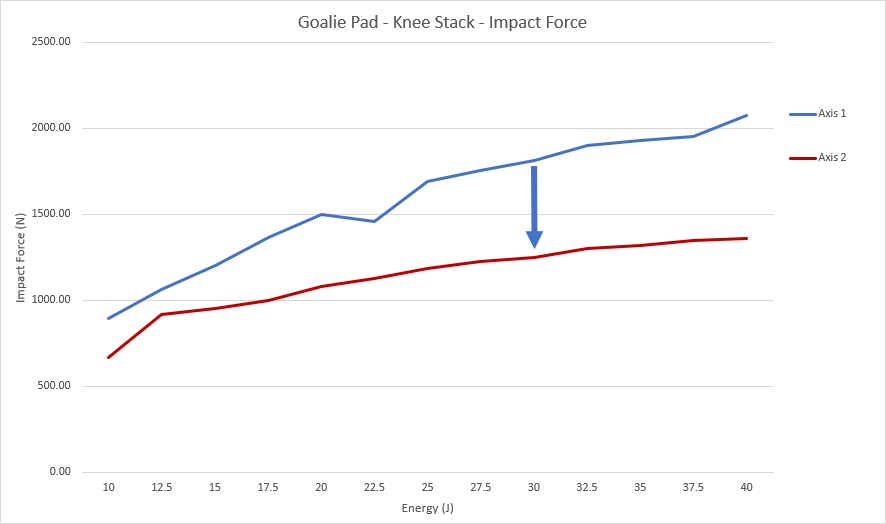 To say that added impact absorption had an effect would be an understatement. Lab testing showed a 31.2 percent reduction in impact force from the original AXIS knee, a significant reduction that should not only reduces wear and tear on goalies’ knees and hips but based on high-speed camera motion capture that we’ll share in our full review in early June, it also helps the pad establish a good seal to the ice faster because there’s less bounce or settling.