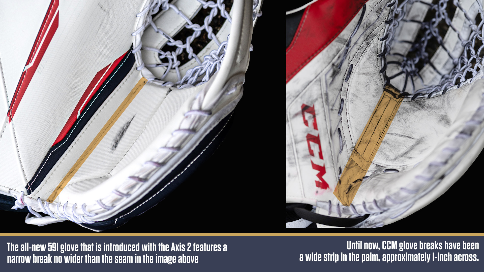 It’s a bold departure, one that some may balk at. For those that are wary, don’t worry, you can still order the original 590 model glove — and of course the original 580 or 600 breaks — through CCM’s expanding custom programs (more on that below). For those willing to try something new, the reward comes from both the improved break mechanics and wrist mobility from that new Cross Form Strap, which is adjustable on either side at the base with Velcro tabs and across the top of the back of the hand with their more familiar buckle-and-strap system.