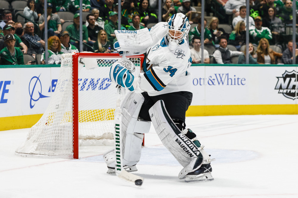 Sharks goaltender Kaapo Kahkonen takes advantage of the removable liner by swapping them each period so he is always playing in dry skates. Photo:  Matthew Pearce/Icon Sportswire