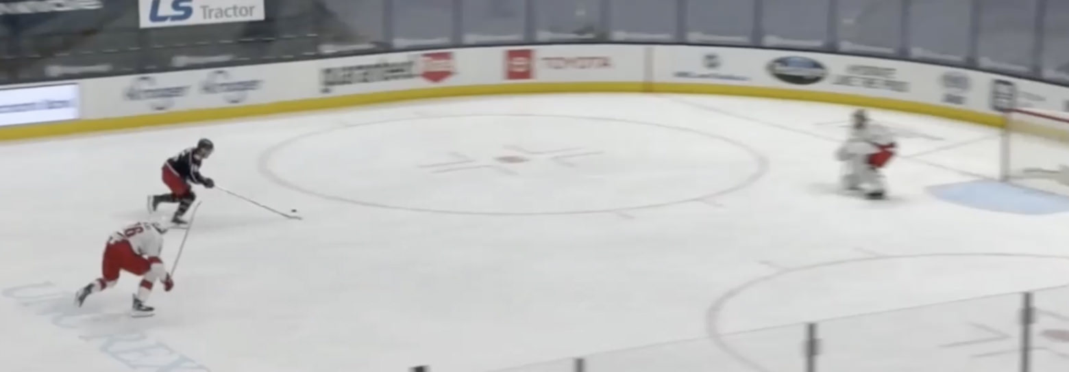 For the fourth straight Pro Read session, Nedeljkovic is breaking down a rush chance but this time it’s a clear-cut breakaway from the blue line against the Columbus Blue Jackets: