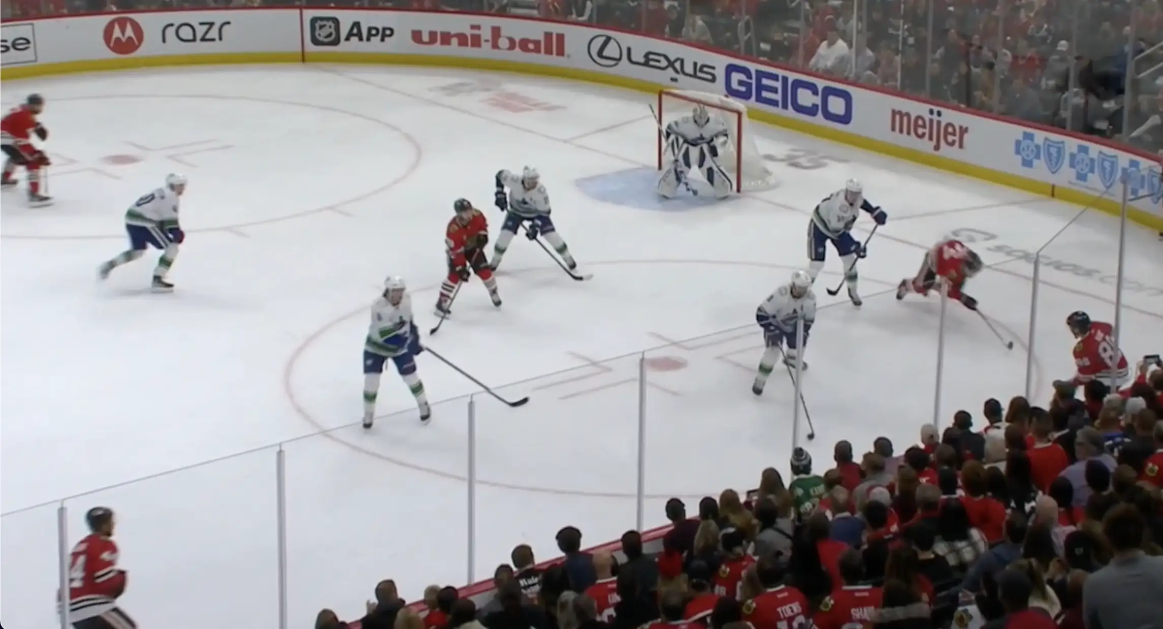 After starting with an odd-man rush, Demko has to sort out an in-zone sequence against the Chicago Blackhawks and fellow American Patrick Kane in his second breakdown: