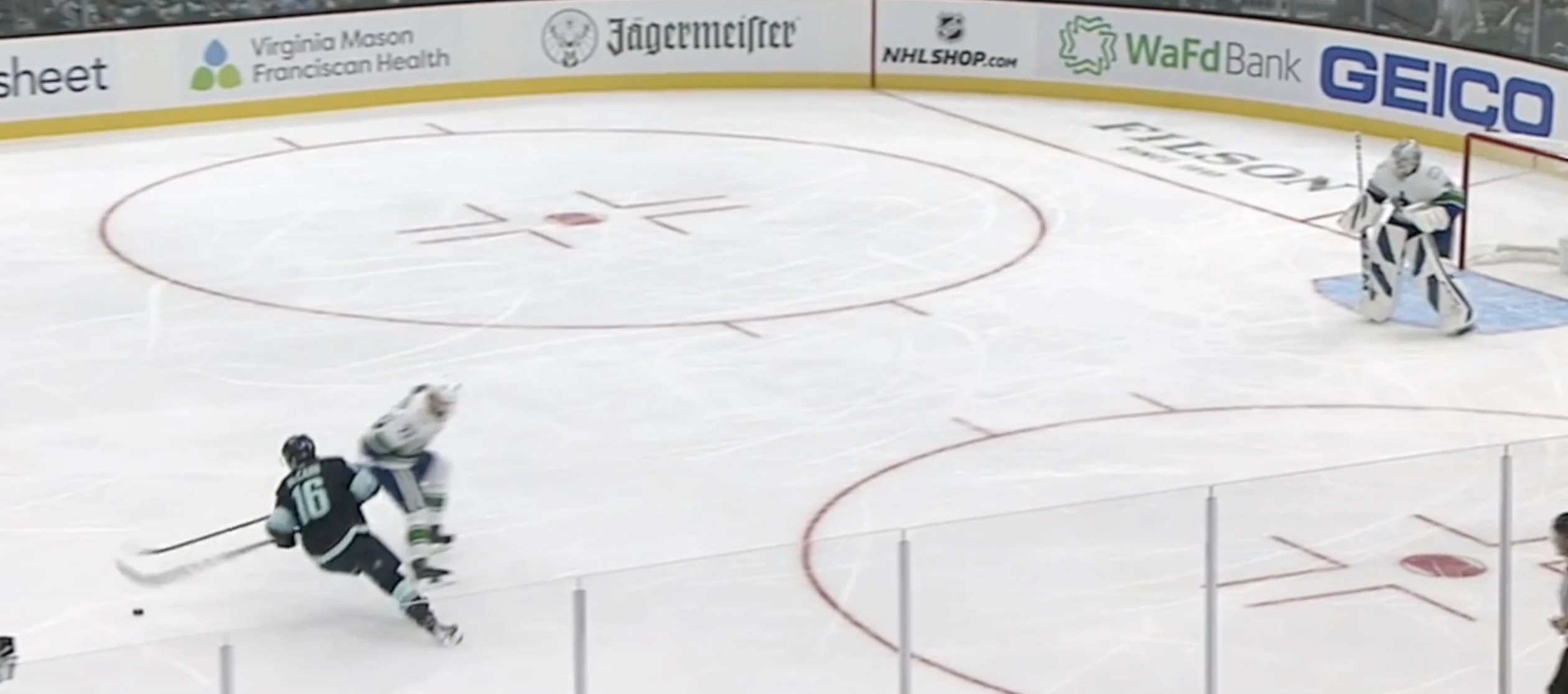 After starting with an odd-man rush and tough in-zone sequence against fellow American Patrick Kane in his first two Pro Reads, this time Demko is facing what some might see as a simple one-on-one rush against Seattle Kraken forward Jared McCann: