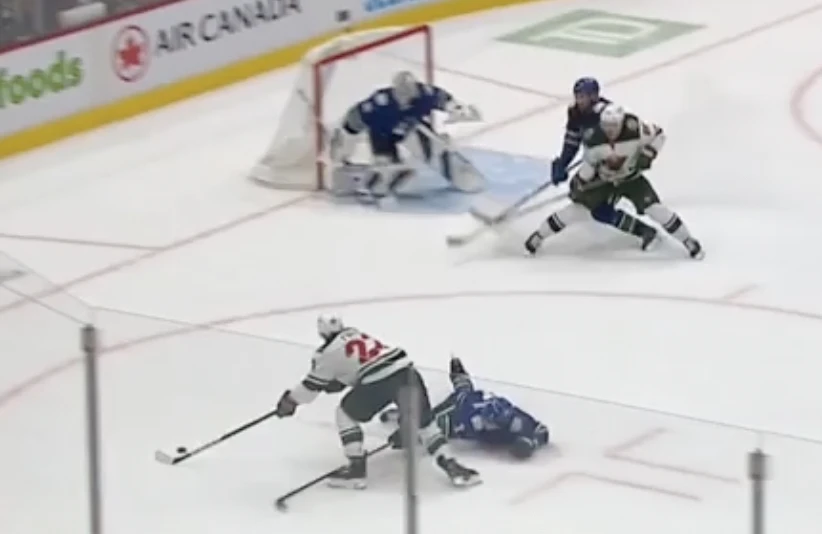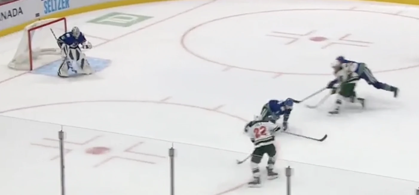 This chance against the Minnesota Wild starts as a 2-on-2 rush coming into the zone: