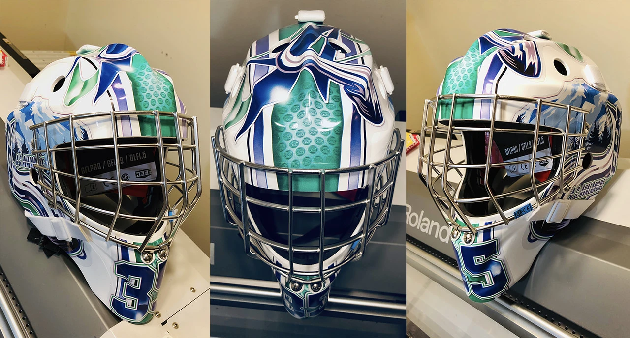 Custom Cages is a Vancouver-based company that has quietly built up a strong reputation for delivering great custom goalie mask designs for less. You can choose from their assortment of stock vinyl decal kits for as low as $33, or create your own custom look by adding a team logo or other graphics to a range of template base options for just $60.