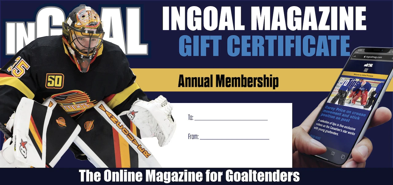 That’s right, buy a one-year gift subscription to InGoal Premium and you not only get access for the upcoming year, but you also get access to our entire archive of four years of premium content, featuring more than 260 Pro-Reads with 38 NHL goalies doing video review sessions to help young goalies learn to read the game better, plus more than 600 other articles including Pro Tips and Pro Drills from top goalies and coaches like Thatcher Demko, Connor Hellebuyck, Dustin Wolf, Joseph Woll, Linus Ullmark, Joey Daccord, Devon Levi, Kristen Campbell Bill Ranford, Ian Clark, Bob Essensa and so many more.