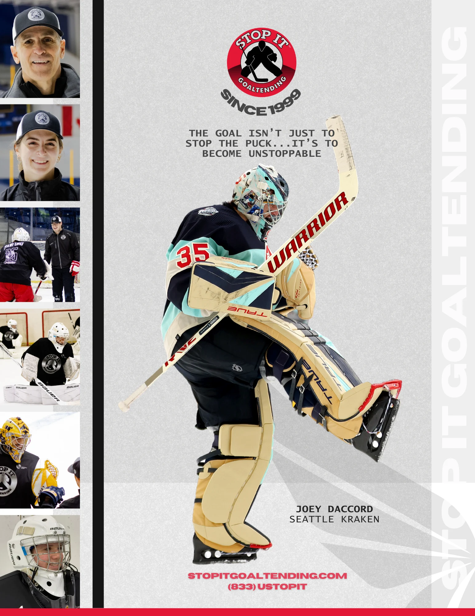 It’s hard to imagine feeling alone in a crowded room but that is a goalie ‘s world. Goaltending is the greatest position in all of sports but they are often neglected until the fate of the team rests on their shoulders. At Stop It Goaltending, goalies are our number 1 priority. Everything we do is to provide goalies the tools and confidence for them to succeed both on and off the ice. We pride ourselves on innovation, being on the cutting edge of goaltending development and have created a world class curriculum, environment, apps and network.